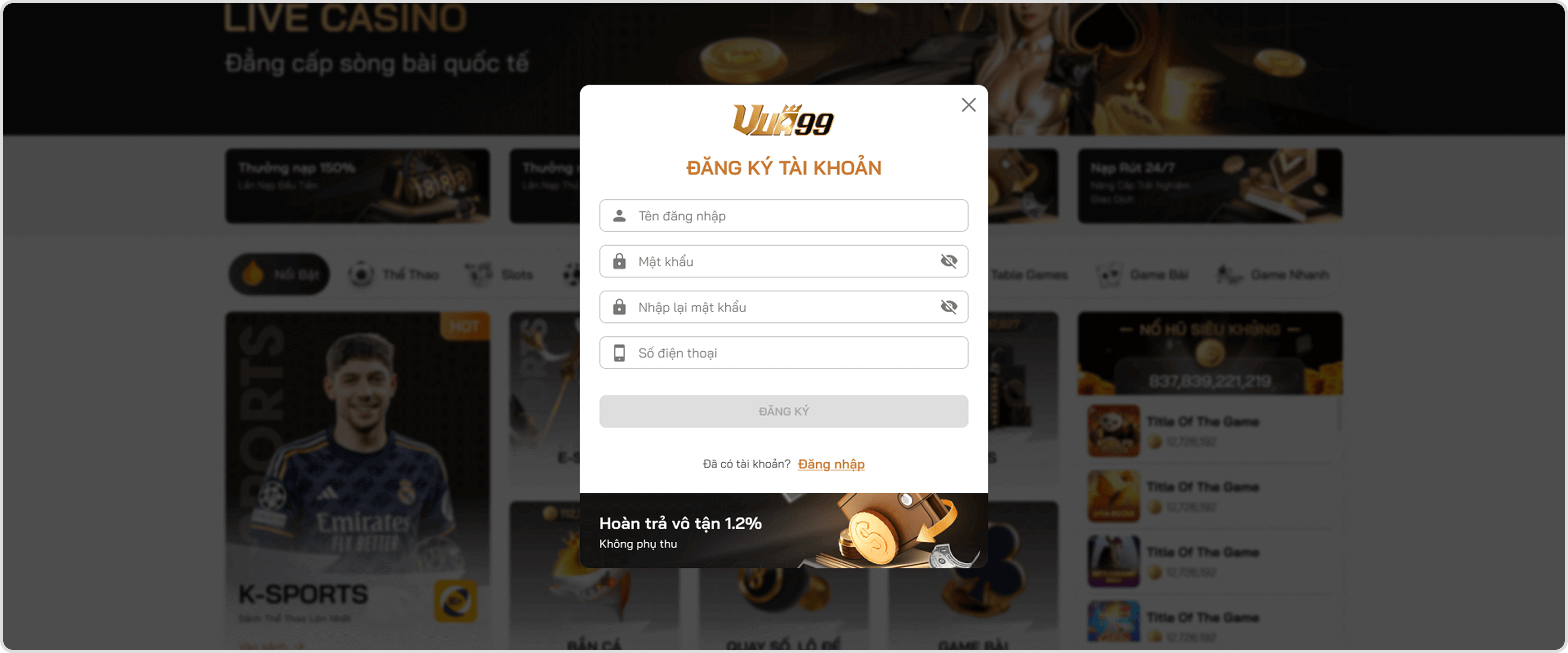- Số điện thoại: Điền chính xác số điện thoại để xác minh khi rút tiền.
