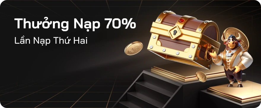 4. Khuyến mãi 70% chỉ áp dụng cho các sản phẩm Thể thao (trừ Thể thao ảo và Volta), Slots nổ hũ Techplay và Bắn cá Techplay. Tiền gửi cộng với tiền thưởng cần hoàn thành 25 vòng cược trước khi có thể thực hiện rút tiền.Ví dụ: Nếu Quý khách nạp 1.000.000 VNĐ, Quý khách sẽ nhận thêm 70% tiền thưởng là 700.000 VNĐ. Tổng số tiền trong tài khoản sẽ là 1.700.000 VNĐ. Do đó, tổng số tiền cược cần hoàn thành là: 1.700.000 x 25 = 42.500.000 VNĐ.